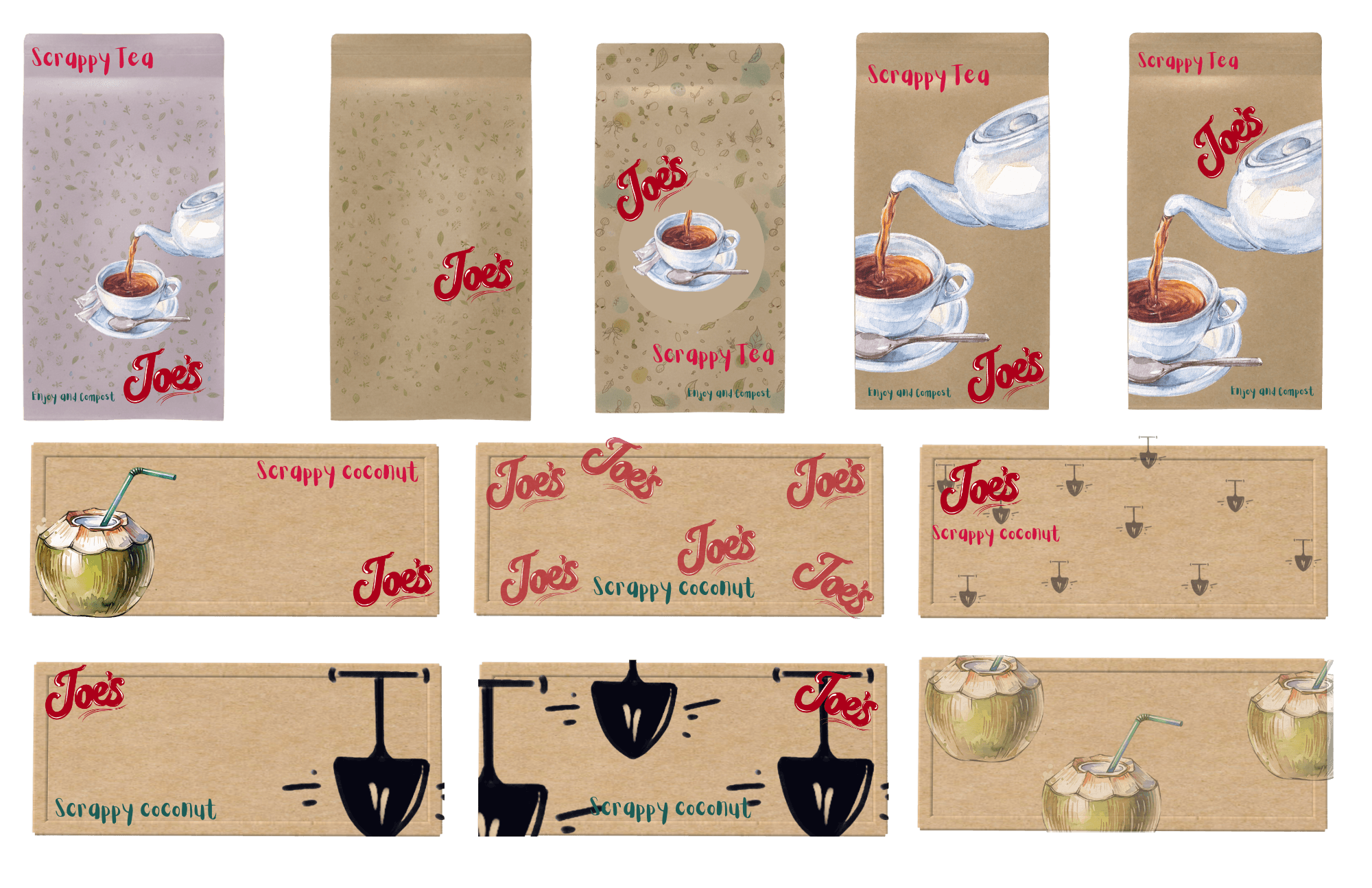 Create a packaging design for a new product line (3-5 items) of Trader Joe's you choose or create.